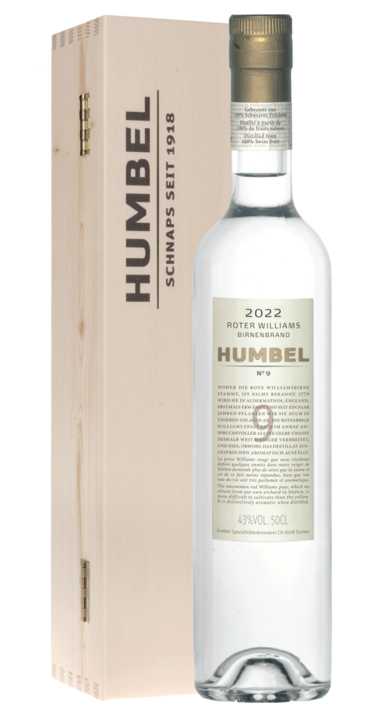 Die Rote Williams ist eine Mutantin der gelben Williamsbirne. Roter Williams verströmt im Glas ein noch intensiveres Aroma als die bekannte Verwandte. Die Früchte stammt aus dem Kanton Wallis.