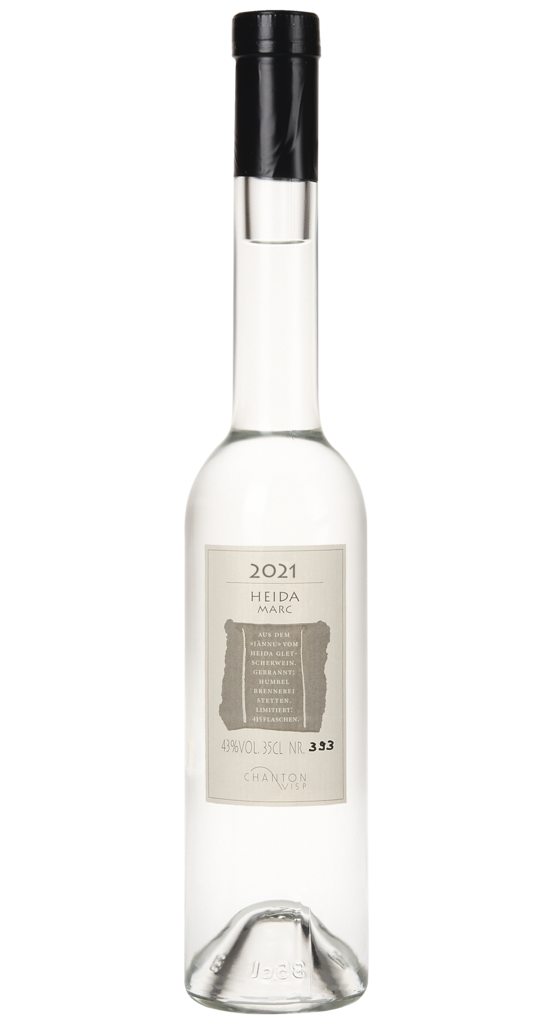 Tresterbrand aus Heida-Trauben der Familie Chanton aus Visp. Die Reben des raren Walliser Weissweins wachsen teilweise auf über 1000 m ü. M.