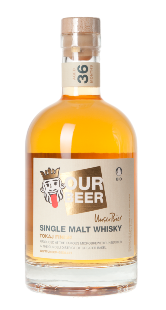 Seit dem Jahr 2000 eine schöne Zusammenarbeit mit der Brauerei Unser Bier, Basel, welche die Maische herstellt. Destilliert wird diese dann bei uns in der Brennerei und das Destillat reift danach für drei Jahre in unseren Fasskellern in verschiedenen Eichenfässern. Abgerundet wurde der Whisky während der letzten Monate in einem speziellen Eichenfass, in dem vorher der berühmte Dessertwein Tokaji Aszu reifte.